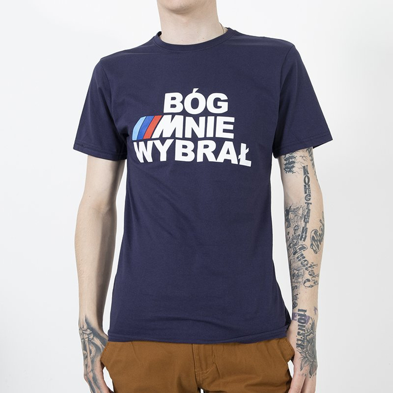 Tricou bărbătesc din bumbac albastru cu imprimeu - Îmbrăcăminte