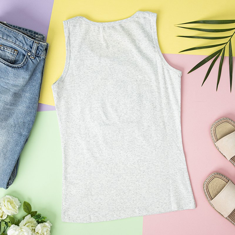 • Bluză pentru femei gustoasă, cu bretele largi, din țesătură de bumbac. Model cu decolteu rotund, decorat cu zirconiu cubic în față. NOTĂ: Precizia măsurării (+/-) 1 cm. Dimensiuni măsurate plate.