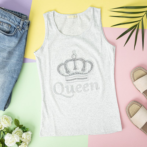 Bluză pentru femei gri deschis cu zirconiu cubic - Îmbrăcăminte