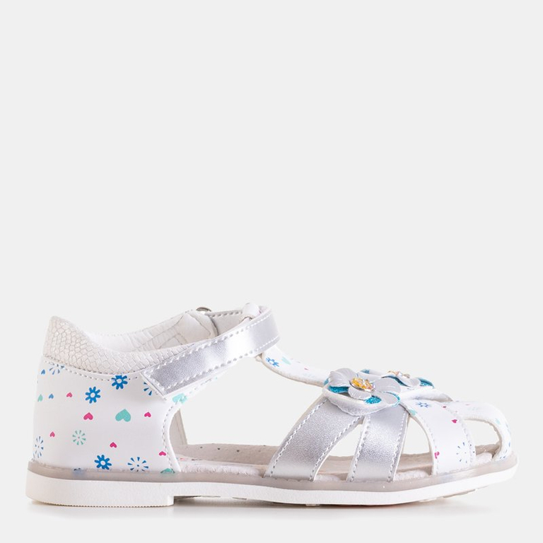 Sandale pentru fete albe și argintii cu decorațiuni Laluna - Încălțăminte