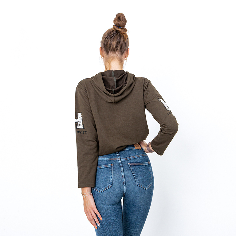 Hanorac cu glugă pentru femei, verde închis, cu inscripții - Îmbrăcăminte