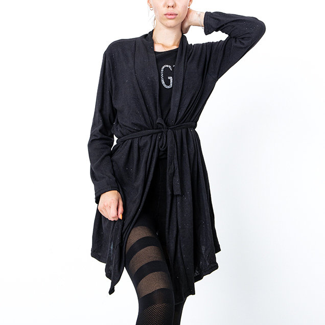 Cardigan negru înnodat pentru femei - Îmbrăcăminte