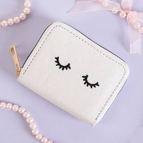 - Un portofel minunat din piele ecologică cu finisaj sclipici, decorat cu gene brodate. Fixat cu fermoar. Modelul are: - 1 compartiment pentru bancnote, - 4 buzunare pentru carduri.