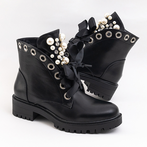 Cizme dama negre cu perle Dwin- Încălțăminte