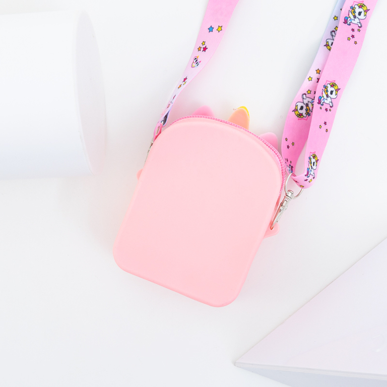 - Geantă fantastică în formă de unicorn pentru fete. Modelul este fixat cu fermoar. Un compartiment interior fără buzunare suplimentare. Setul include o curea lungă atașată la un carabiner și cu posibilitate de reglare.
