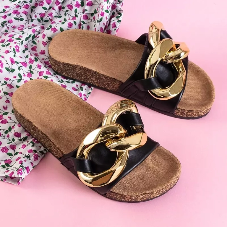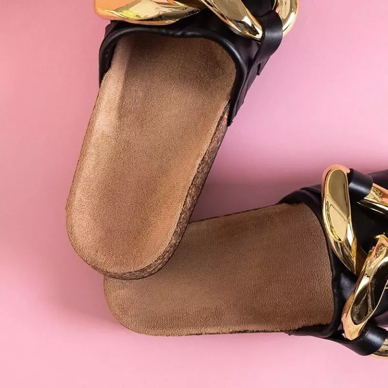OUTLET Papuci negri pentru femei cu decor auriu Deirdre - Încălțăminte