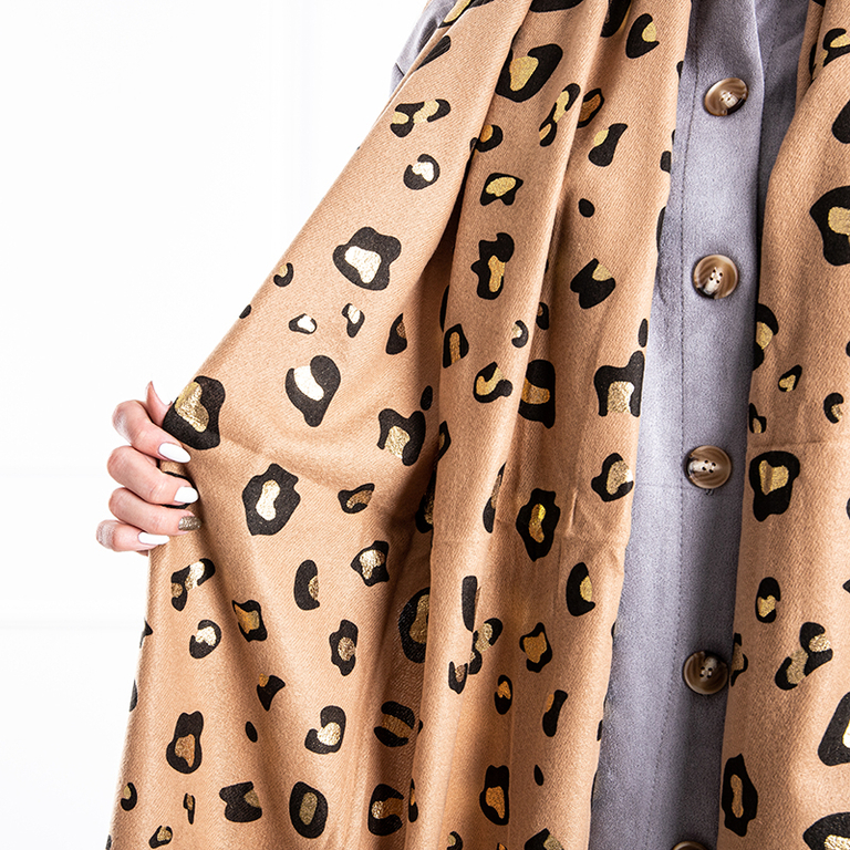 Eșarfă caldă maro cu inserții aurii - Accesorii