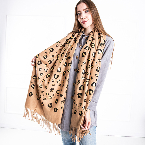 - Eșarfă caldă frumoasă pentru femei, perfectă pentru toamnă și iarnă. Decorat cu inserții aurii și ciucuri pe laterale.