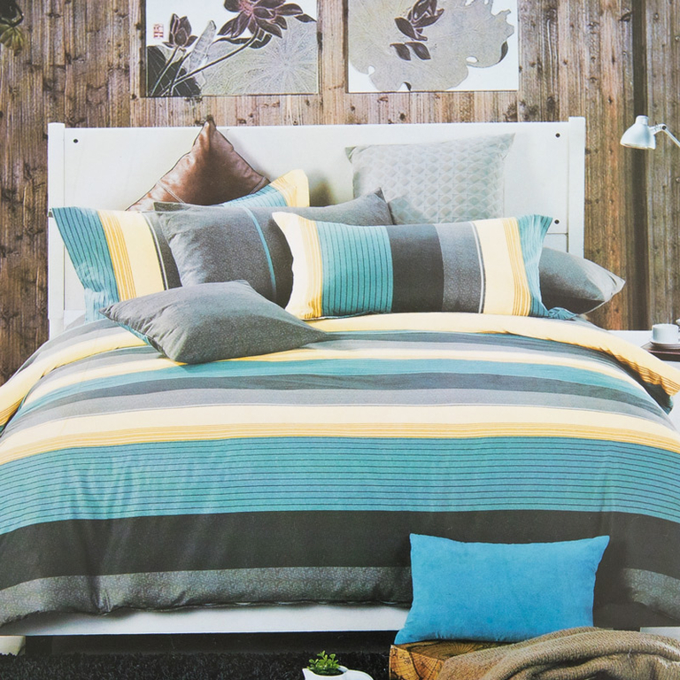 Lenjerie de bumbac turcoaz 200x220 set cu dungi 4-PIECES - Lenjerie de pat