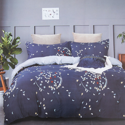 Lenjerie de pat din bumbac albastru marin cu stele 160x200 set 4 părți - Lenjerie de pat