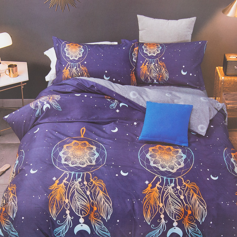 Lenjerie de pat din bumbac albastru inchis 200x220 captatoare de vis 4-PIECES - Lenjerie de pat