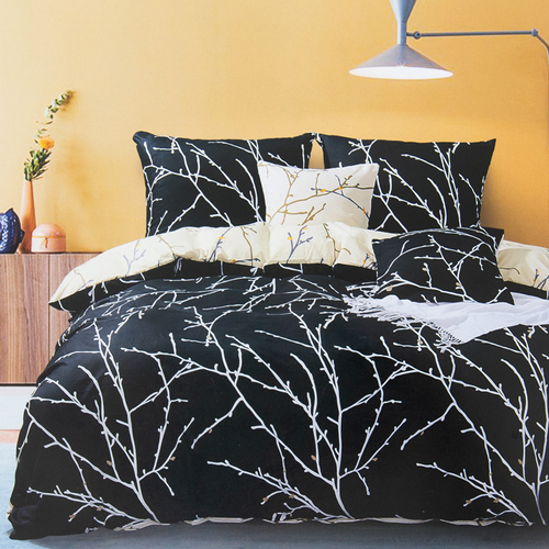 Set de lenjerie de pat din bumbac negru 200x220 4-PIESE - Lenjerie de pat
