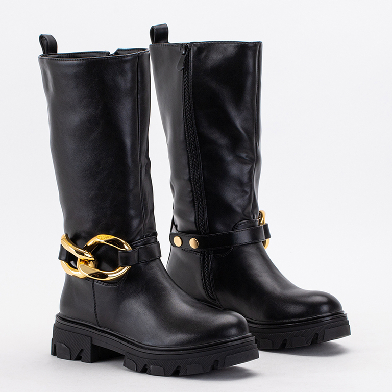 Cizme negre pentru femei cu lanț Helari - Încălțăminte