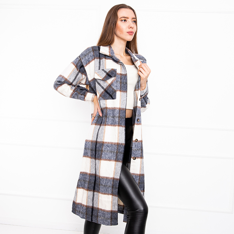 Cămașă lungă cu carouri bleumarin pentru femei - Îmbrăcăminte