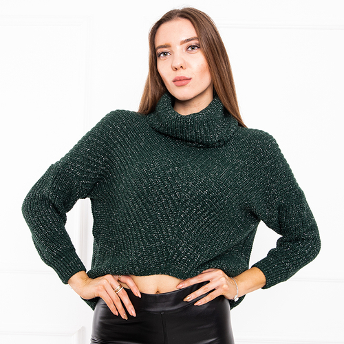 Pulover scurt pentru femei cu guler cu sticle verde, îmbuteliat - Îmbrăcăminte