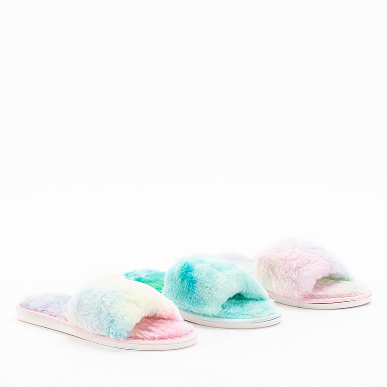 Papuci de dama colorati din blana Tisa - Incaltaminte