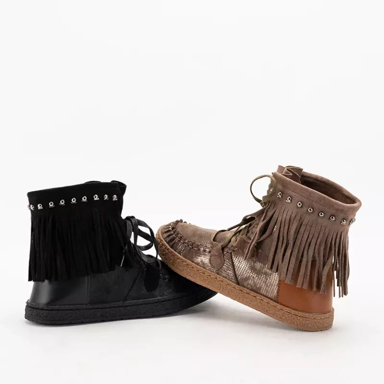 OUTLET Cizme de zapada de dama maro cu franjuri Medisal - Incaltaminte