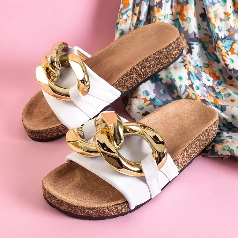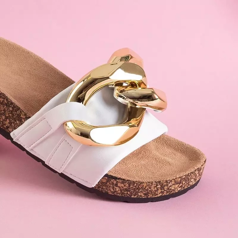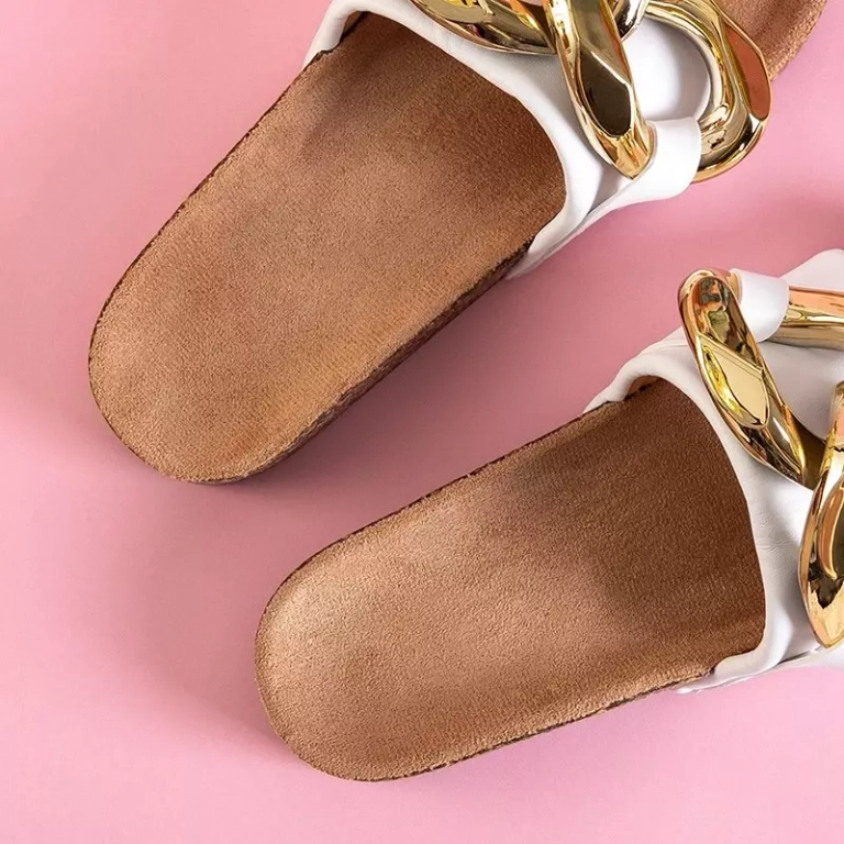 OUTLET Papuci dama albi cu decor auriu Deirdre - Incaltaminte