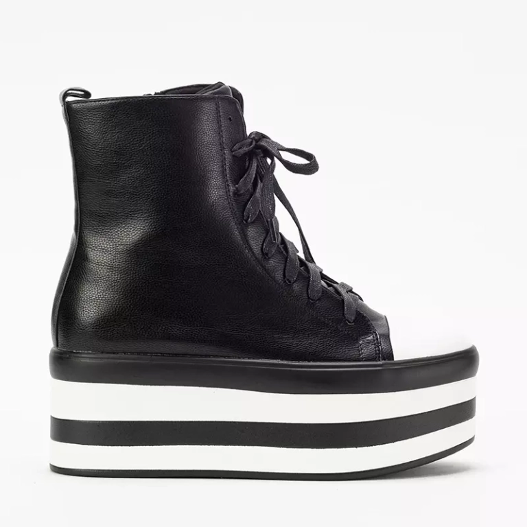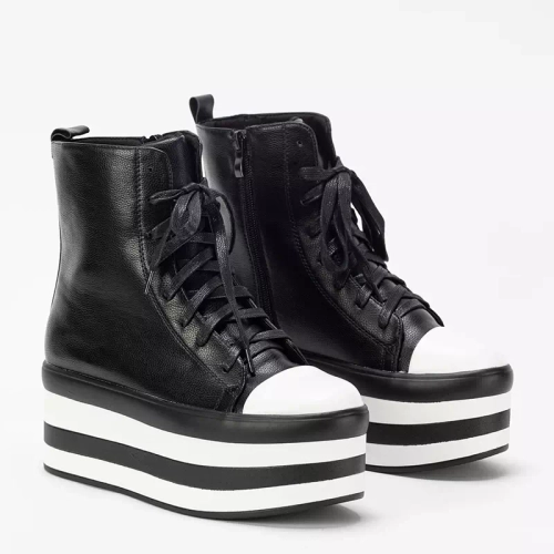 - Cizme unice de dama pe platforma inalta, din piele ecologica. Modelul este siret si are fermoar in lateral, o insertie de material pe mijloc. Notă: produsul are decolorare pe material.