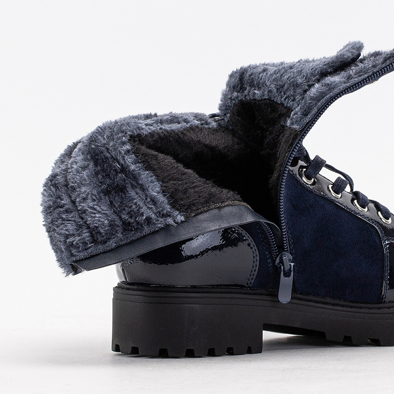 Cizme de damă bleumarin parțial lăcuite Ginoko - Pantofi