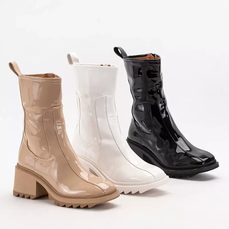 - Cizme cu varf patrat, din piele ecologica lacuita. Modelul este izolat cu o spuma subtire, prins cu fermoar la glezna. Unic! Notă: produsul are decolorare pe material.