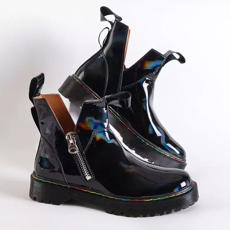 OUTLET Cizme dama lacuite negre cu fermoar Odeta - Incaltaminte