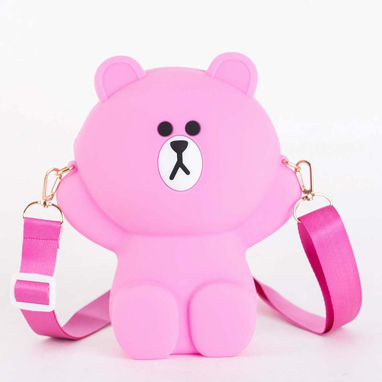 - Geantă minunată din plastic siliconat în formă de ursuleț. Model cu fermoar. Un compartiment interior fara buzunare suplimentare. Setul include o curea lungă care poate fi reglată. Un decor grozav pentru stilul de zi cu zi.