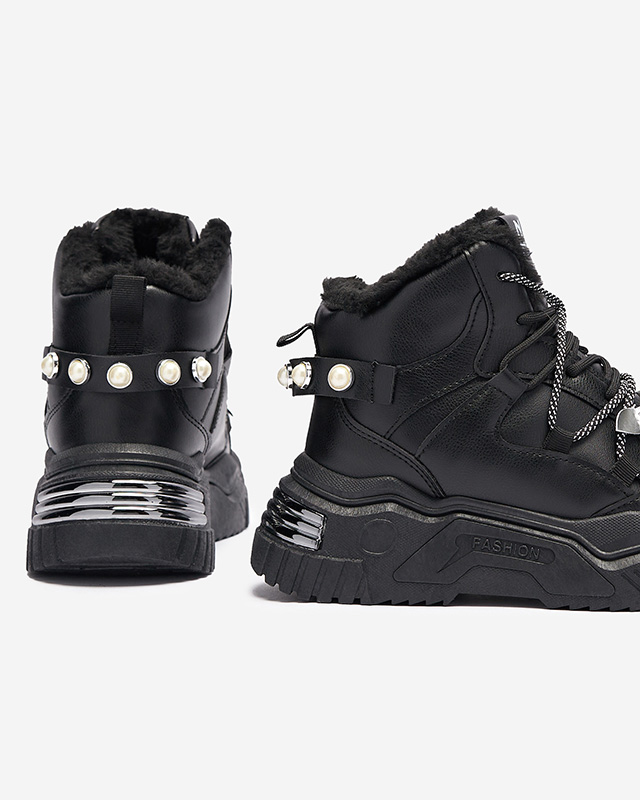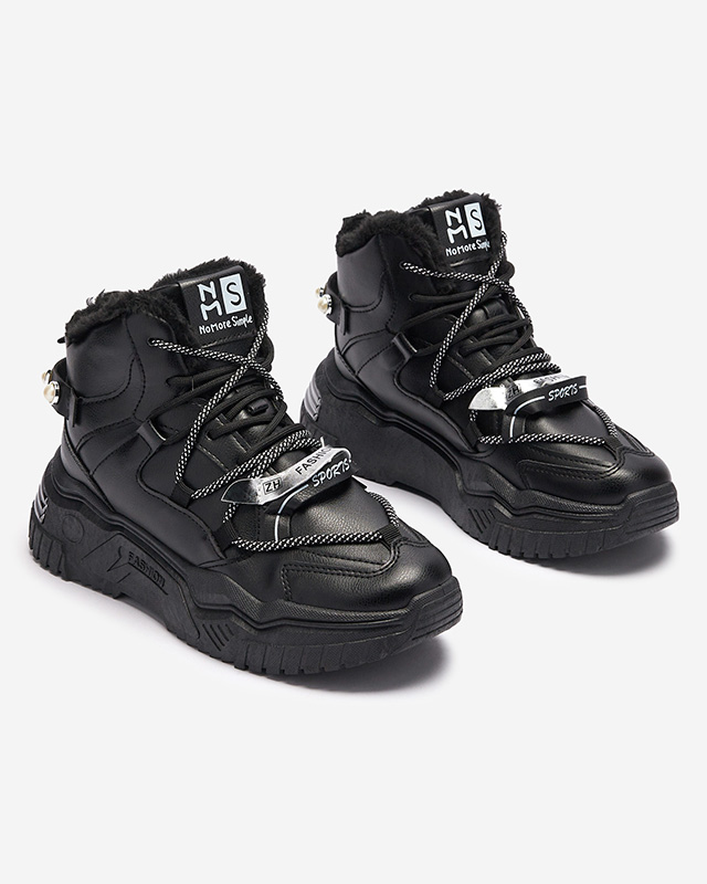 • Adidași sport de damă izolați cu blană pe o talpă masivă. Modelul este decorat cu insertii decorative si perle, legate cu siret dublu. Perfect pentru zilele mai reci pentru ținutele de zi cu zi!