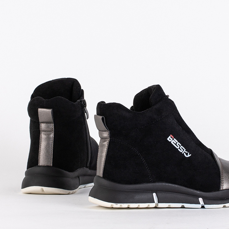 - Cizme fete cu talpa plata in stil sport, din piele ecologica. Interiorul pantofului este izolat cu o blană groasă, plăcută la atingere. Limbă decorată cu inserții metalice. O alegere bună pentru vreme rea!