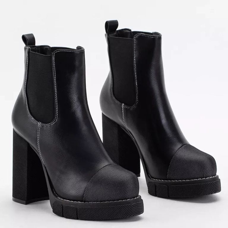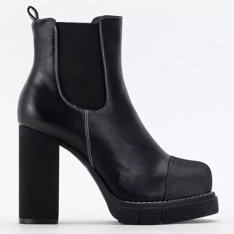 • Cizme negre de dama pe stalp inalt, model din piele ecologica. Varf finisat cu stofa, brant tot din material, pantofi fara inchidere. Notă: produsul are urme de lipici pe material.