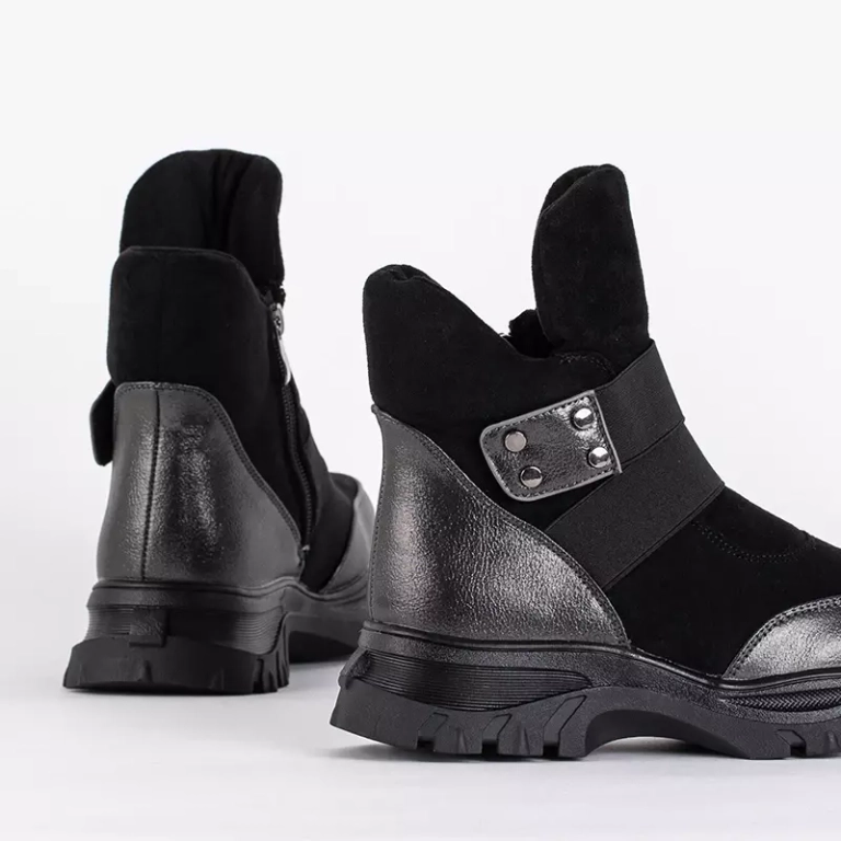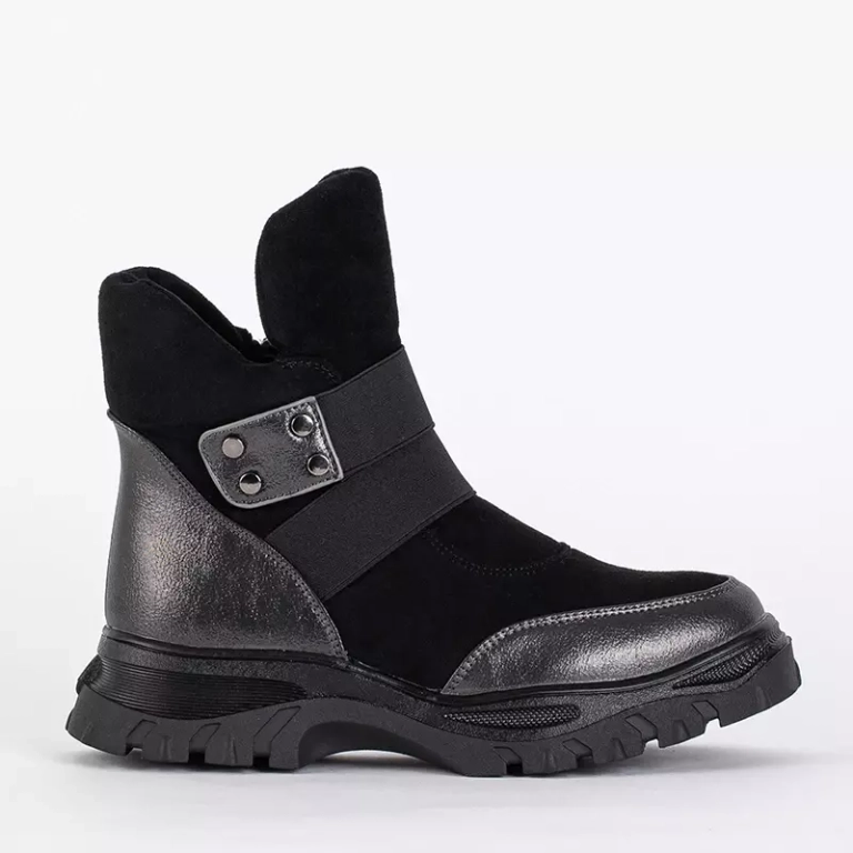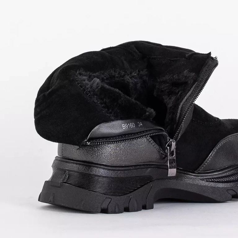 - Ghete zvelte pentru copii cu talpa plata, din piele intoarsa ecologica. Interiorul pantofului este izolat cu o blană groasă, plăcută la atingere. Partea superioară este decorată cu o clemă de cauciuc. Cald si confortabil! Notă: produsul are urme de lipici