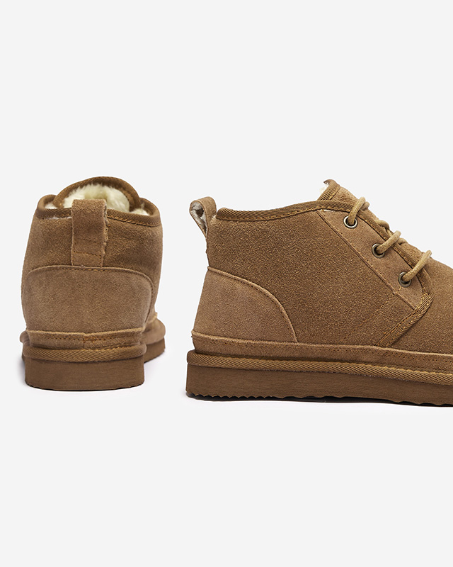 Cizme de zăpadă de damă maro deschis legate cu blană Miusho - Încălțăminte