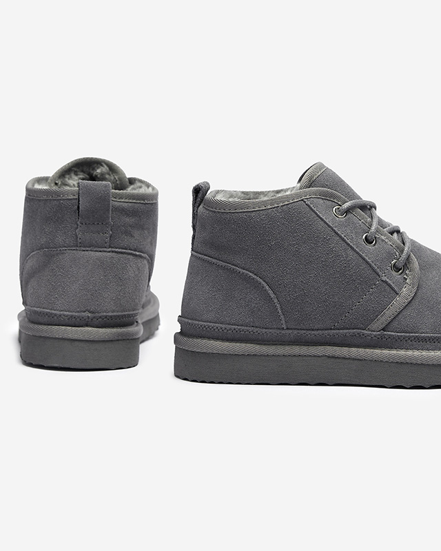 Cizme de zăpadă damă gri cu blană legate Miusho - Încălțăminte