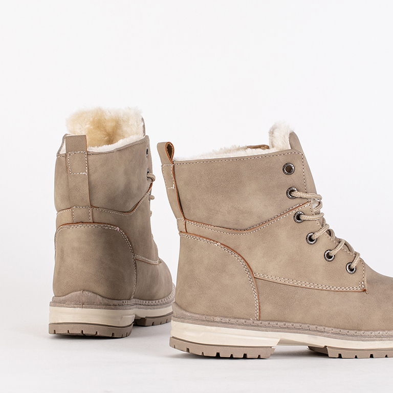 - Ghete de drumeție de damă grozave, din piele ecologică mată. Partea superioară cu șireturi. Încălzit cu blană moale. Pantofi de beton pentru vreme rea!
