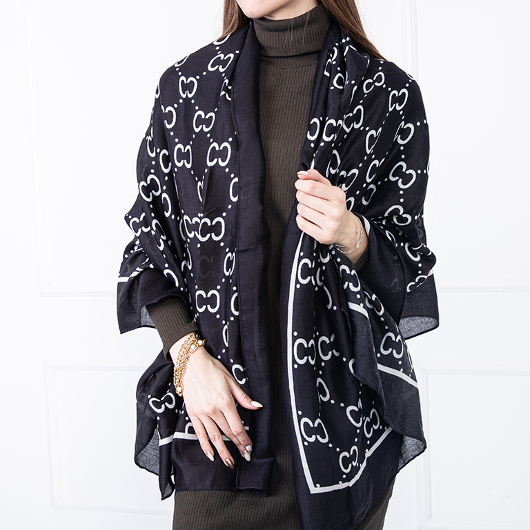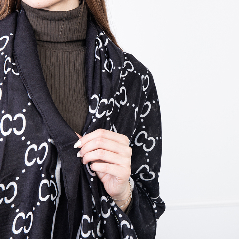 Eșarfă neagră de damă cu model - Accesorii