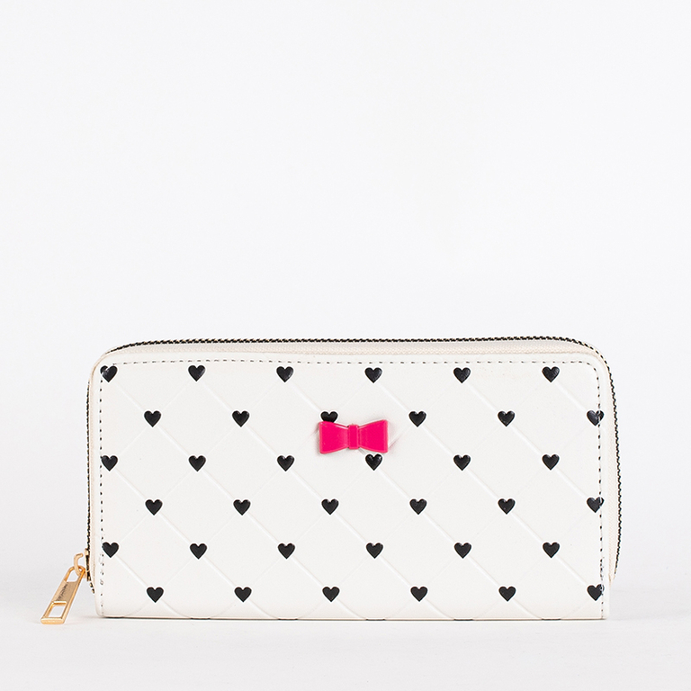 - Un minunat portofel de dama din piele ecologica finisat cu matlasare si imprimeu inima. Produs prins cu fermoar. Modelul are: - 2 compartimente, inclusiv 1 buzunar cu fermoar pentru monede, - 10 buzunare pentru carduri de plata sau alte documente.