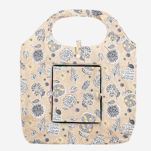 - Geantă mare de cumpărături cu model, pliată la dimensiunea unui portofel. Fabricat dintr-un material rigid, rezistent la apă, a'la pânză uleioasă. Un model încăpător și foarte practic - perfect pentru cumpărăturile de zi cu zi!