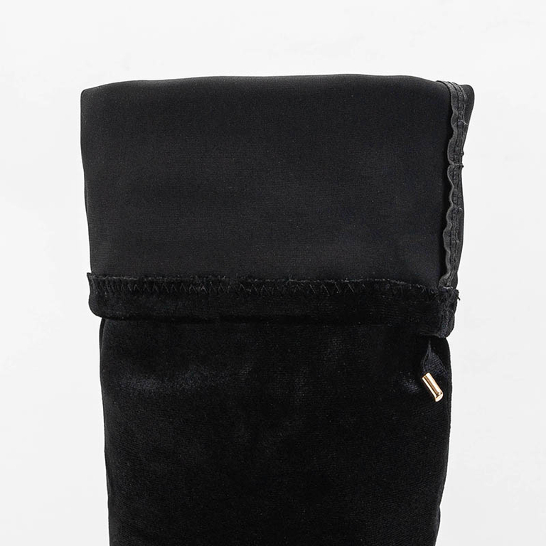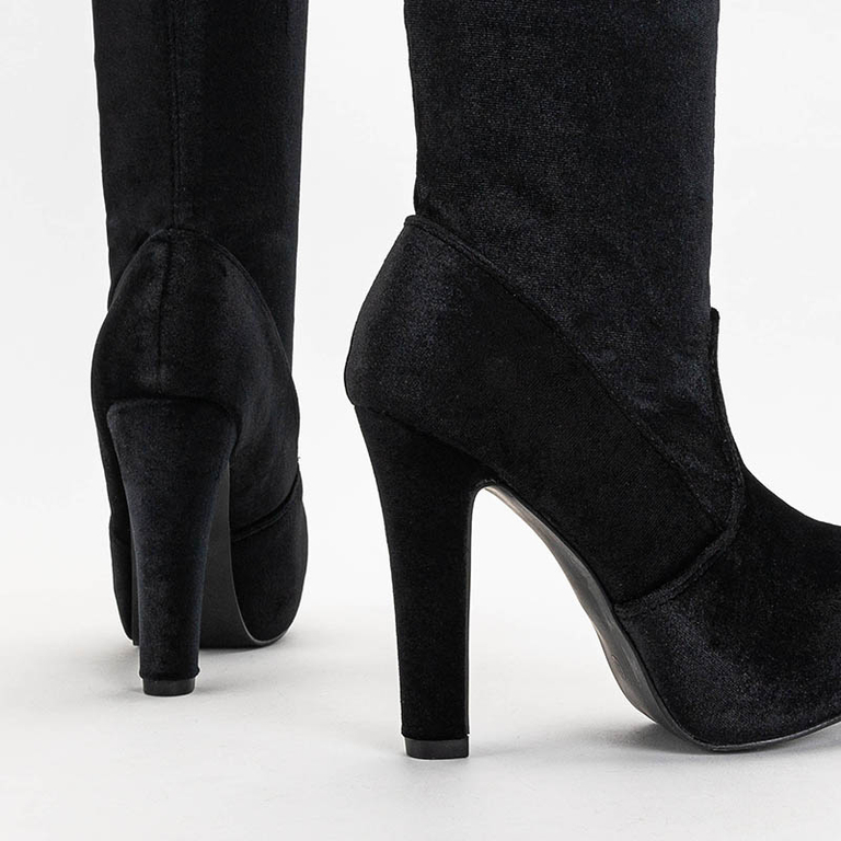 Cizme peste genunchi din velur cu toc înalt de culoare neagră - Încălțăminte