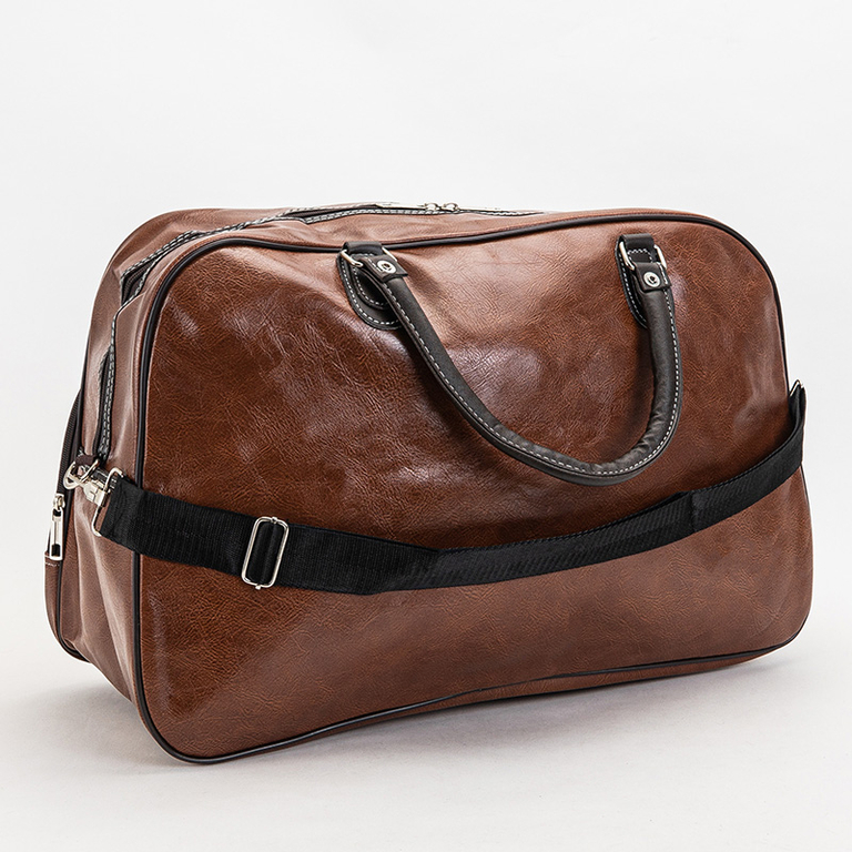 • O geantă de voiaj mare, la îndemână, din piele ecologică lăcuită, cu 2 mânere scurte și curea mai lungă detașabilă, închisă cu fermoar dublu. Modelul are: - 1 compartiment principal fara compartimentare, - 1 buzunar exterior cu fermoar.