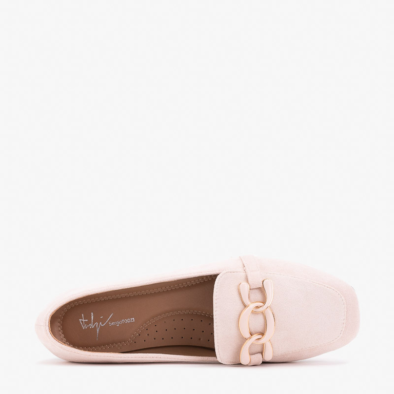 - Mocasini casual de damă cu vârf pătrat și ornament. Partea superioară este din piele intoarsa ecologica moale, brantul este din piele ecologica. Confortabil și atemporal!