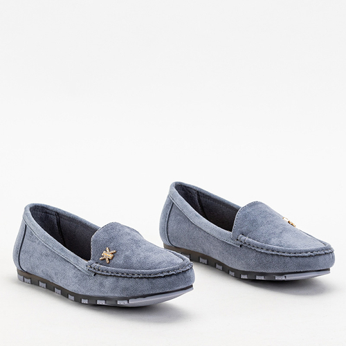Mocasini de dama albastru deschis cu un accesoriu Skuizo auriu - Incaltaminte