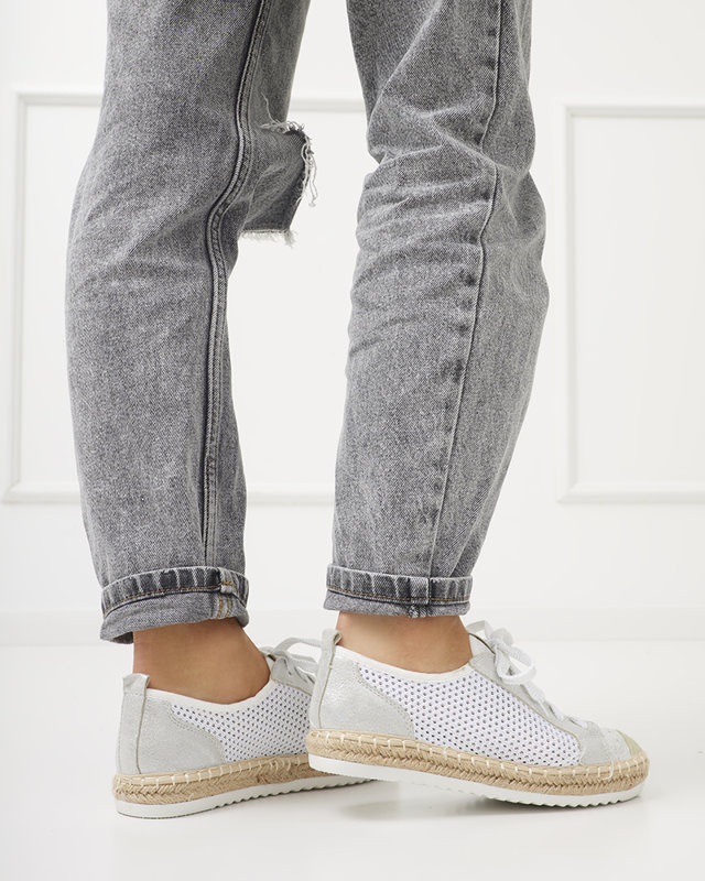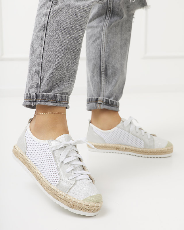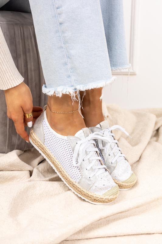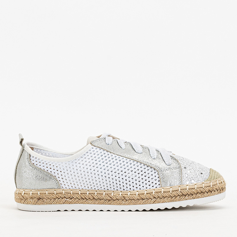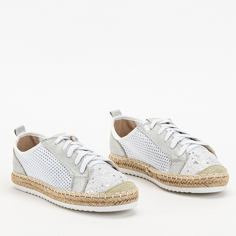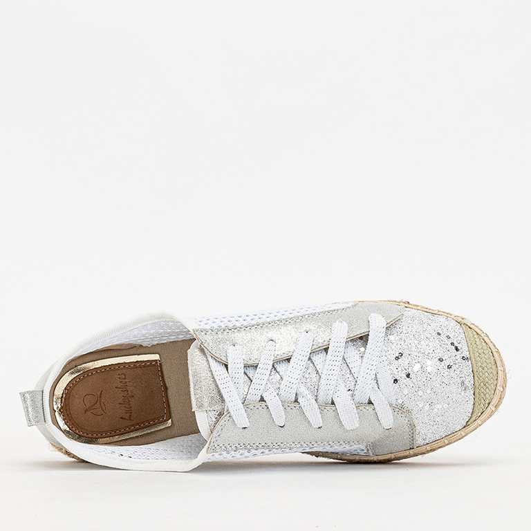 Tenisi albi Akoio ajurati cu sclipici - Pantofi