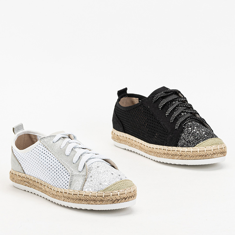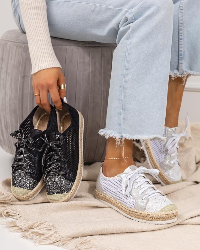 • Pantofi sport dama in stil adidasi, confectionati din tesatura ajurata cu insertii cu sclipici din piele ecologica. Model cu șireturi. Pantofi lejeri casual de dama!