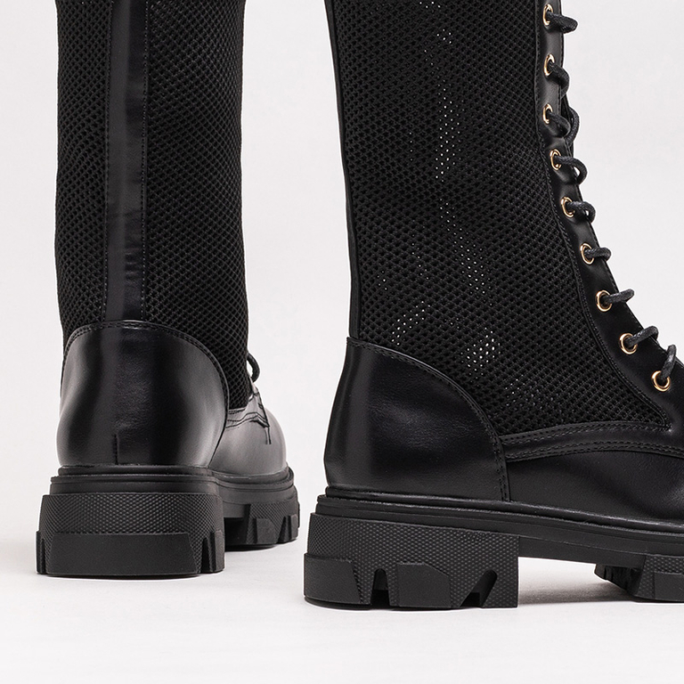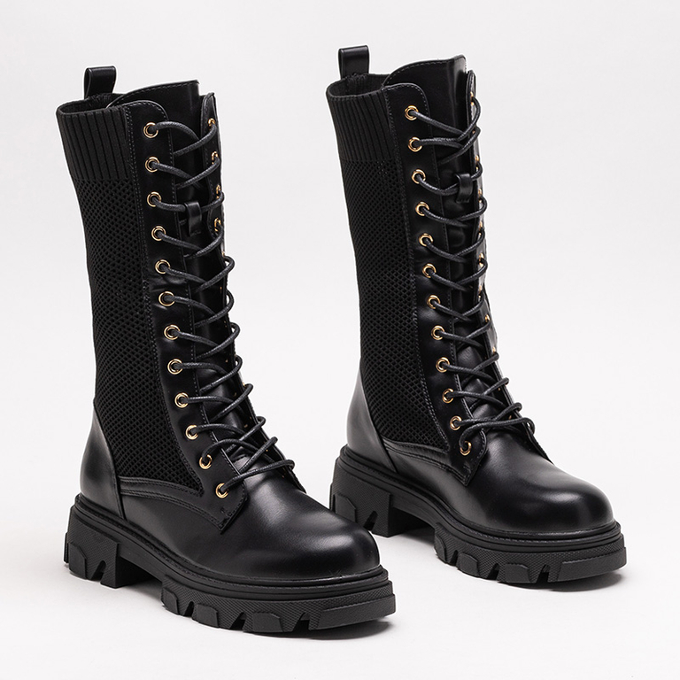 Cizme de dama negre ajurate cu siret Buhomi - Incaltaminte