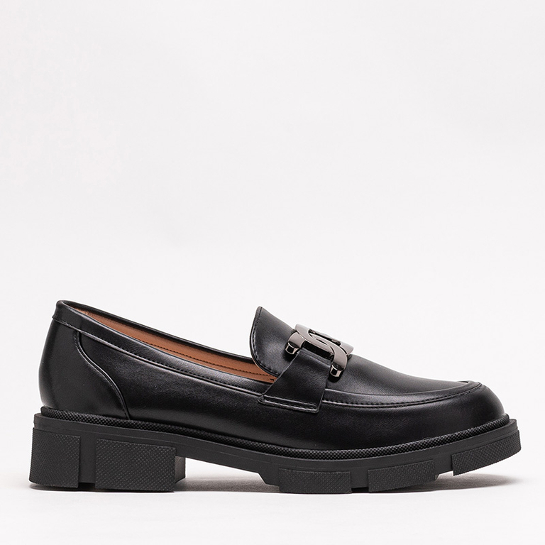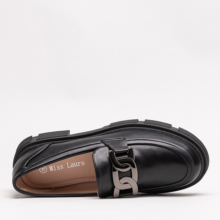 - Cei mai la modă pantofi de damă cu talpă groasă din acest sezon. Partea superioară și branțul sunt din piele ecologică. Degetul de la picior este decorat cu un lant de plastic. Încălțăminte perfectă pentru uz zilnic.
