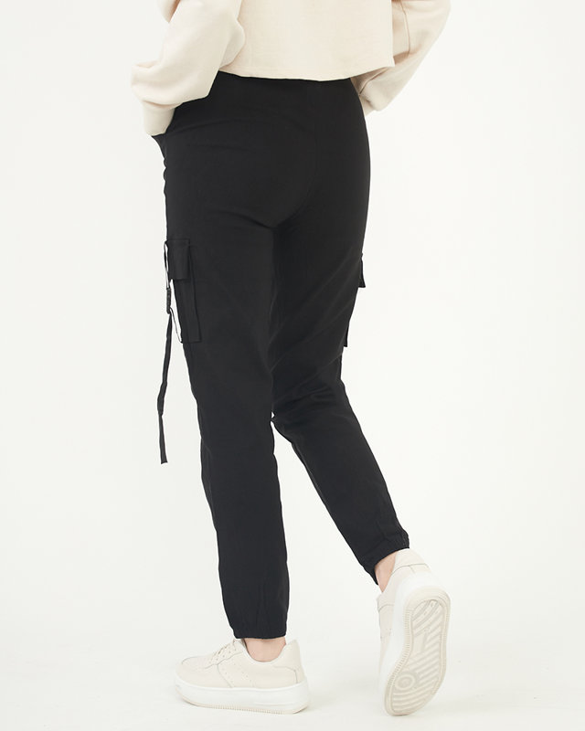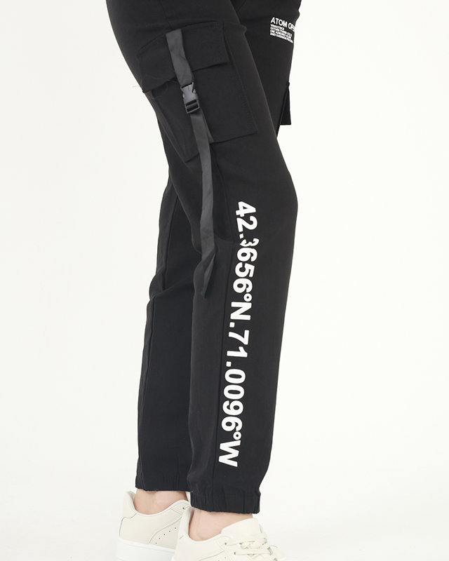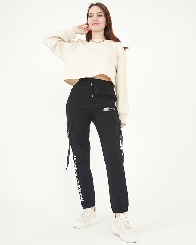 Pantaloni de luptă din stofă neagră pentru femei cu inscripții - Îmbrăcăminte