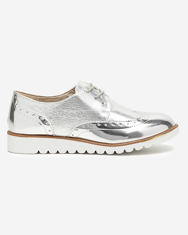 Pantofi de damă argintii cu inserții de retinis argintii strălucitori - Încălțăminte