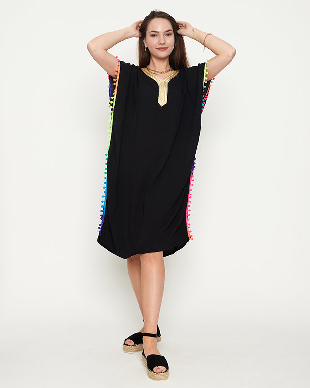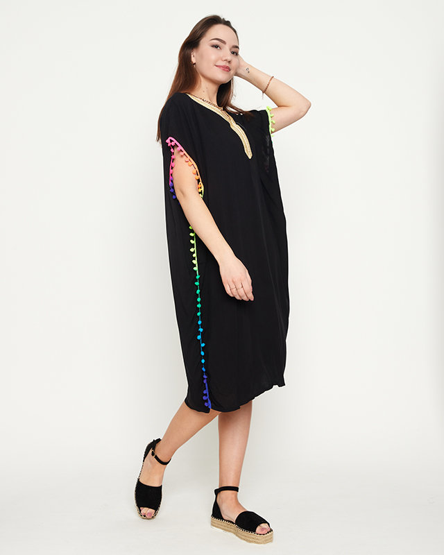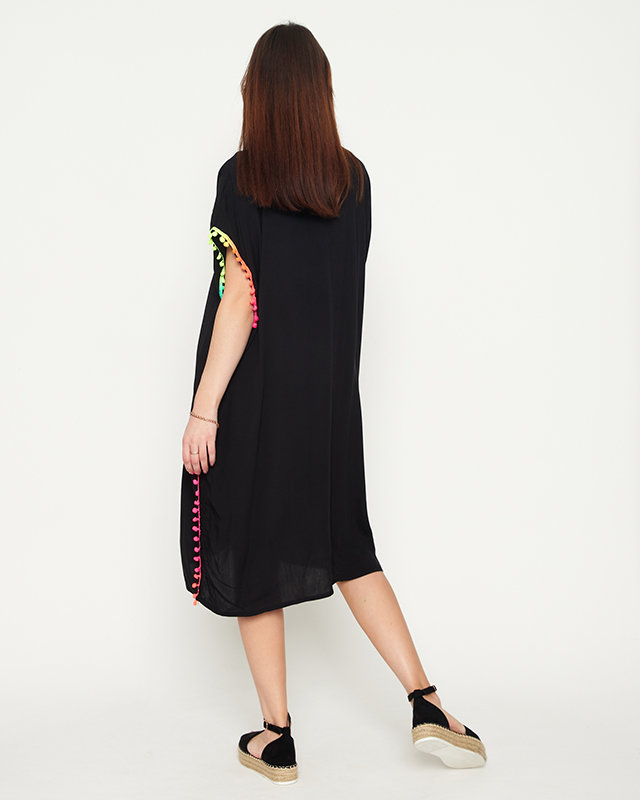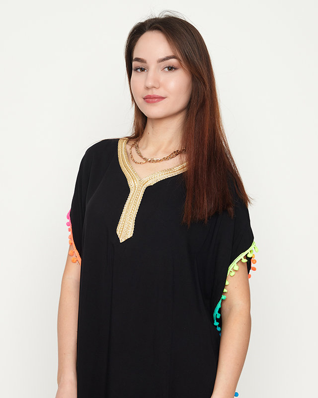 Tunica de plaja dama neagra de vara cu pompoane - Imbracaminte