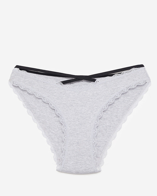 Chiloți gri de damă cu dantelă și dungi - Lenjerie intimă