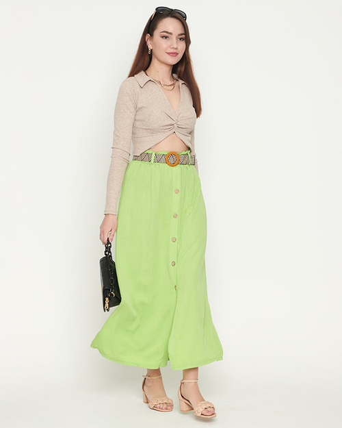 - Fusta midi de damă din material plăcut din bumbac. Cauciuc elastic în talie și curea împletită. Model cu nasturi. NOTĂ: Precizia măsurătorii (+/-) 1 cm.